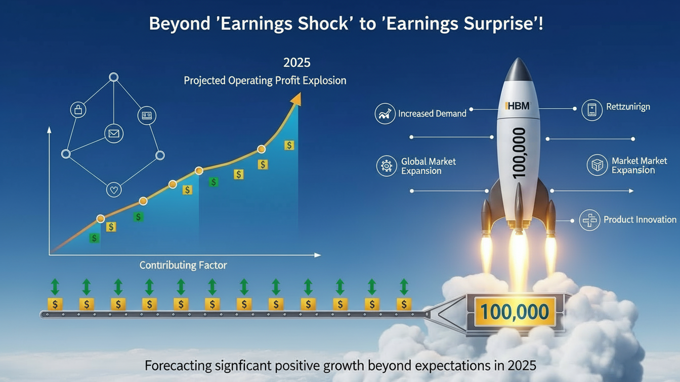 • 🚀 AI/HBM 모멘텀 폭발: 고성능 AI 반도체 시장이 커지면서 HBM 수요가 기하급수적으로 늘고 있습니다. 삼성전자의 HBM3E 공급이 본 궤도에 오르면 메모리 사업의 수익성이 극적으로 개선 될 것입니다.