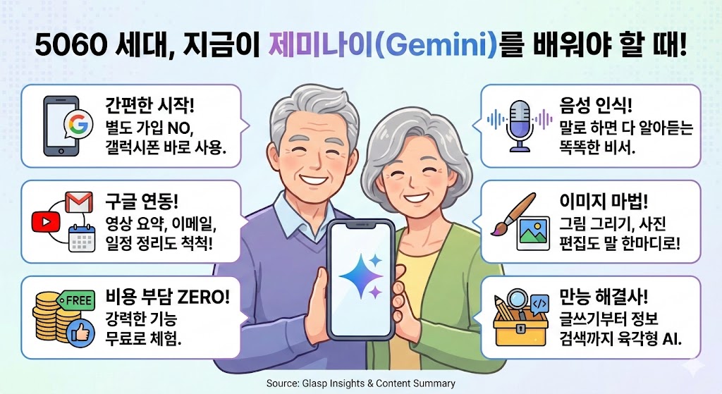 5060 세대에게 AI는 더 이상 어렵고 먼 미래의 기술이 아니에요. 제미나이는 여러분의 스마트폰 속에서 이미 주인을 기다리고 있답니다.