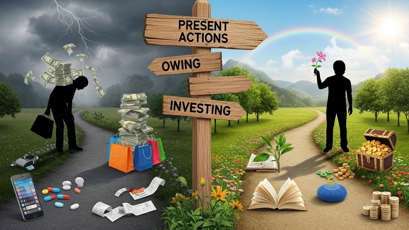 여러분은 현재의 즐거움(도파민, SNS, 소비)을 위해 미래의 나에게 '빚'을 지고 있나요, 아니면 미래의 나를 위해 '투자'하고 있나요?현재의 행동이 미래의 나에게 청구서가 될지, 배당금이 될지 선택해야 합니다.